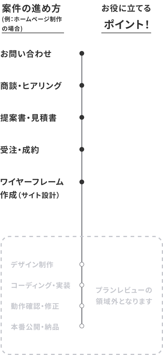提案、見積もり、ワイヤーフレーム。その後のデザイン、コーディングの行程にも大きく影響してくるためです。 -